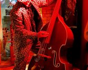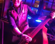 TOCHI TORPEDO stimmt den Bass kurz vor dem Gig